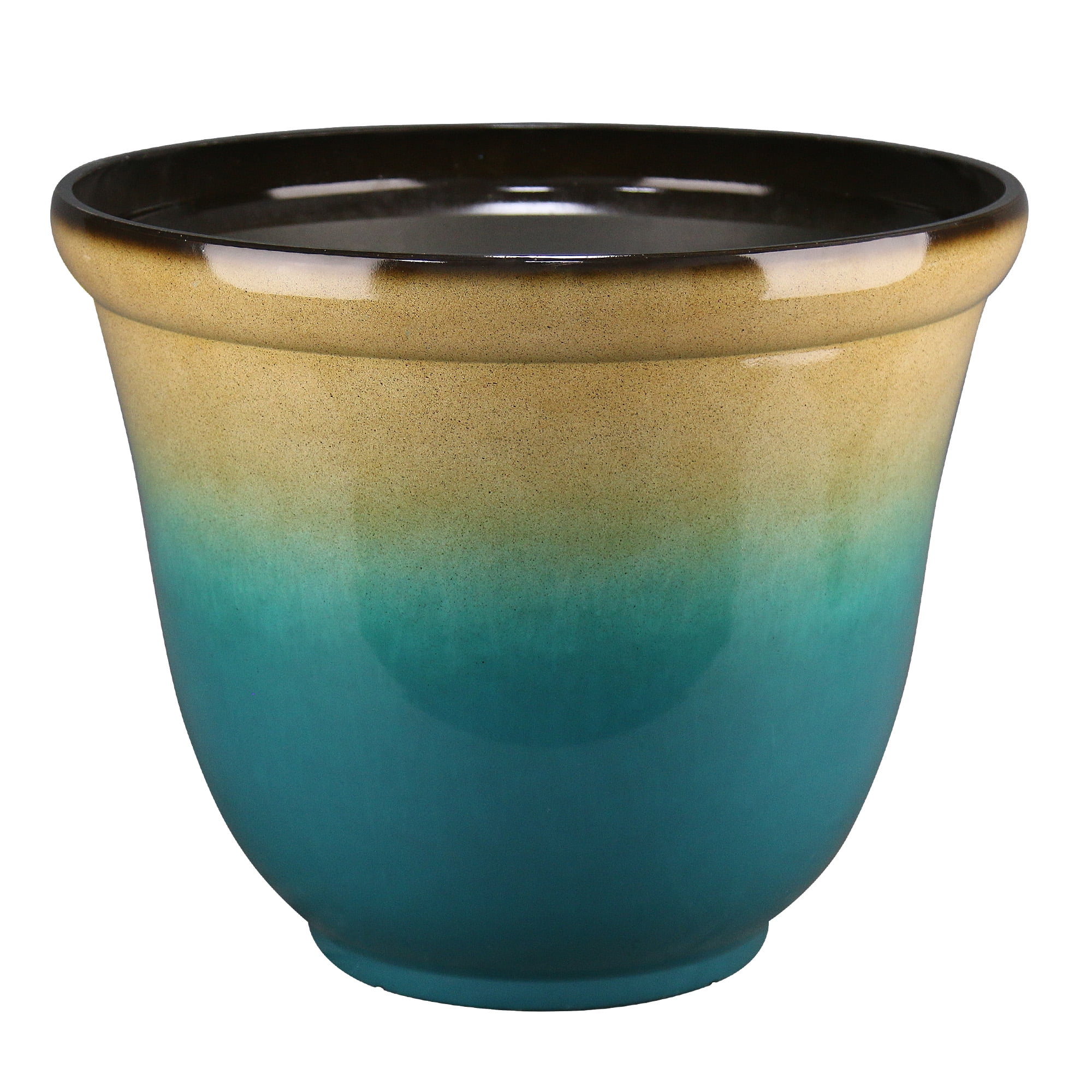Amazon Com The Hc Companies 22 Inch Mojave Round Planter Large Premium Decorative Plastic Plant Pot With Stone Look For Indoor Outdoor Use Black Patio Lawn Garden