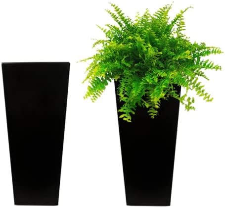 Amazon Com Elevens Set Of 2 Tall Outdoor Planters 20 Inch Large Planters For Indoor Outdoor Plants Tapered Square Flower Pots With Tray For Patio Black Patio Lawn Garden