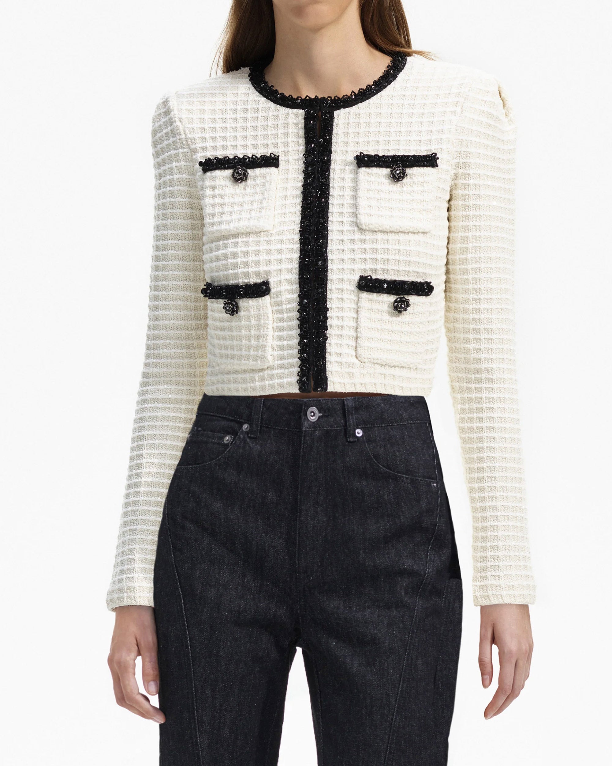 Contrast Trim Fuzzy Crop Cardigan Commense